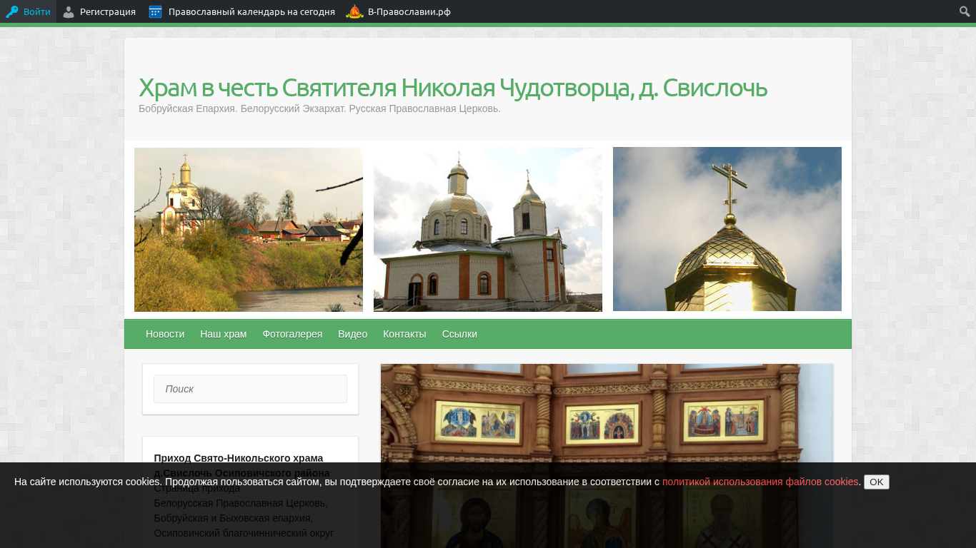 | Название / Заголовок | Храм в честь Святителя Николая Чудотворца, д. Свислочь | Бобруйская Епархия. Белорусский Экзархат. Русская Православная Церковь. |