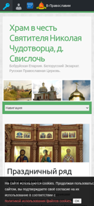 | AI-анализ | This website is dedicated to the Church of Saint Nicholas the Wonderworker in the village of Sviслоch', belonging to the Bobruysk Eparchy of the Belarusian Exarchate of the Russian Orthodox Church. The site provides news, photo galleries, and videos documenting the construction and consecration of the church, as well as its daily life. The latest news includes the completion of the iconostasis adornment in June 2021, followed by the installation of missing icons for the Paschal cycle. Other news covers the 180-year anniversary of the Polotsk Cathedral and the installation of the upper tier of the iconostasis in December 2017. The site also includes contacts and links for navigation. |