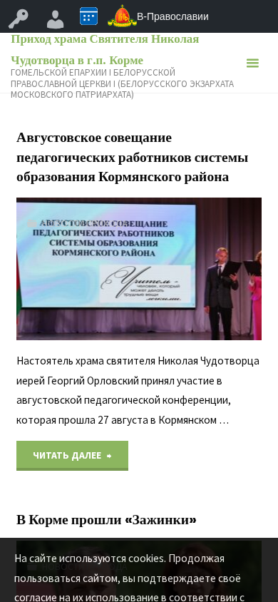 | Название / Заголовок | Приход храма Святителя Николая Чудотворца в г.п. Корме — ГОМЕЛЬСКОЙ ЕПАРХИИ I Белорусской православной церкви I (Белорусского Экзархата Московского Патриархата) |