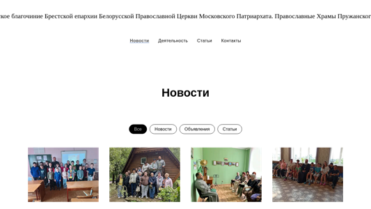 | SEO-описание | Пружанский район. Беларусская Православная Церковь. Храмы Пружанщины. Благочиние Пружанского района Брестской области. Жизнь приходов православных церквей Пружин и Пружанского района. Анонсы и новости Пружанского района. |
