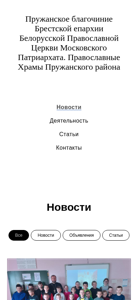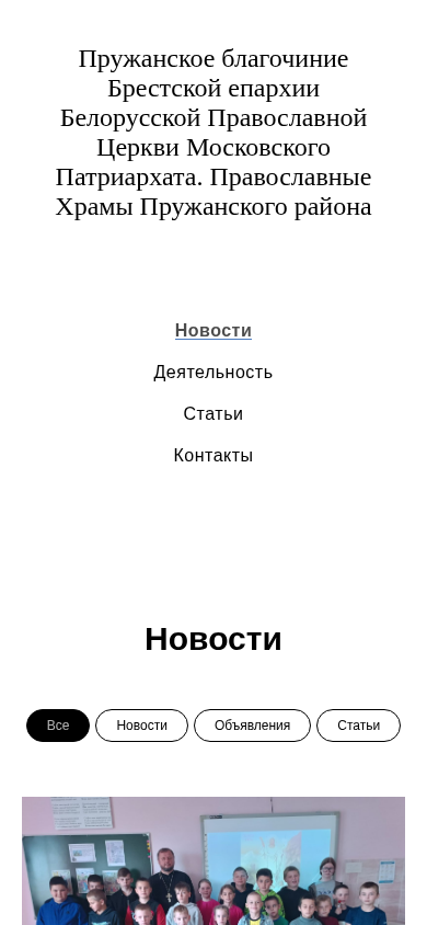| AI-анализ | This online resource is dedicated to the Pruzhan District of Belarus and the Belarusian Orthodox Church. It focuses on the churches in the Pruzhan region and the activities of the Pruzhan District Eparchy of the Brest Diocese of the Belarusian Orthodox Church of the Moscow Patriarchate. The website provides news, articles, and contacts. The top words indicate that there are frequent updates on news, announcements for 2025, and detailed articles about the church's activities and events. Some of the recent news includes visits to schools and social institutions, church festivals, and historical sites. The website also features information on the history of the region and its notable figures. |