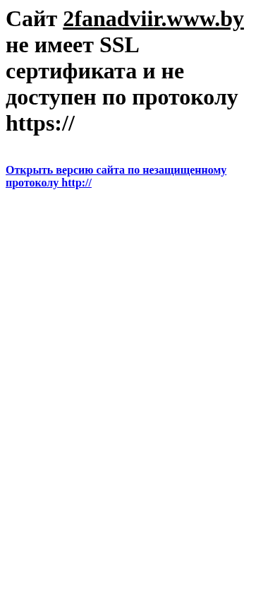 | AI-анализ | The website 2fanadviir.www.by does not have an SSL certificate and is not accessible via the secure https protocol. It can only be opened using the unsecured http protocol. |