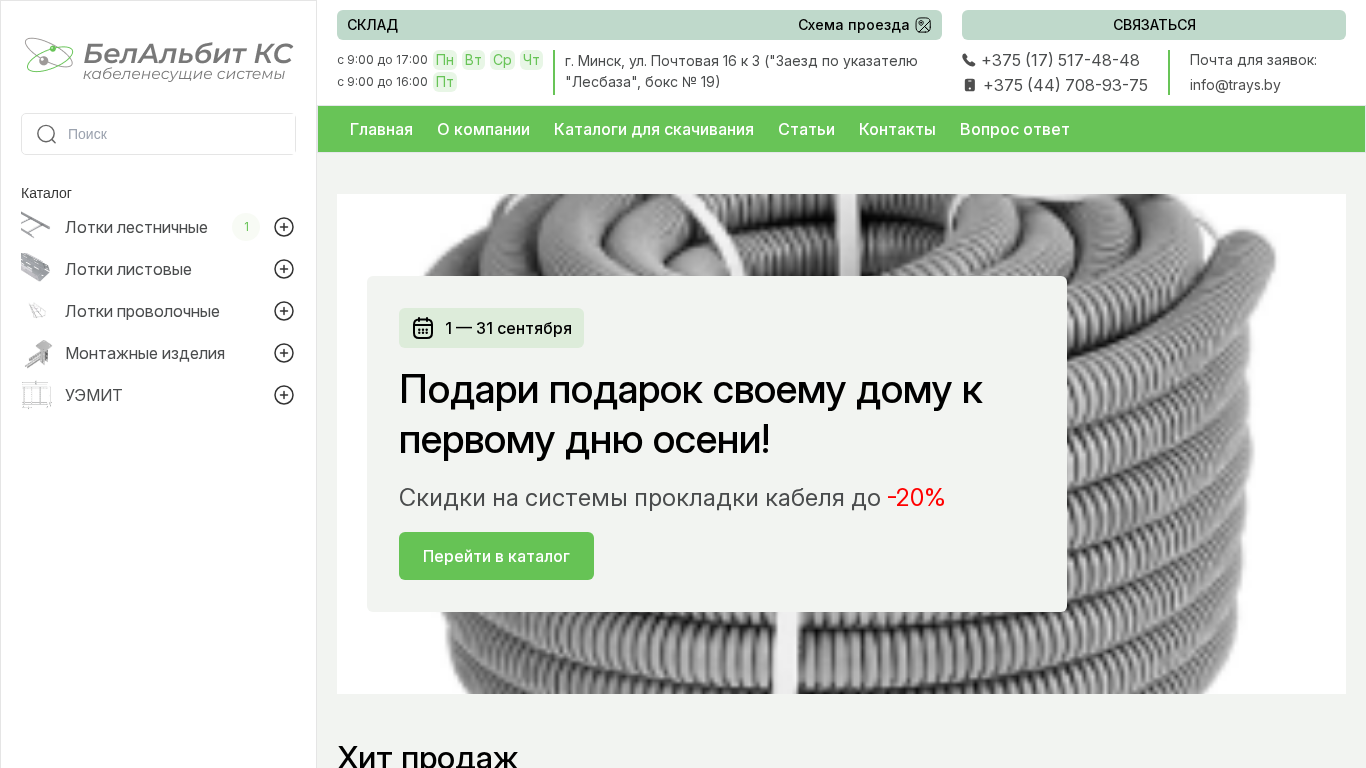 | AI-анализ | --- The website Belalbit.by is an e-commerce platform specializing in the sale of various types of trays and related components. The title of the website is 'БелАльбит КС' and the description mentions keywords such as 'лотки' (trays), 'комплектующие' (components), and specific product types like 'лестничные' (stairs), 'листовые' (sheet), and 'проволочные' (wire). The top_words indicate that 'лотки' is mentioned 31 times, '375' 14 times, and 'лоткам' 6 times. The categories of trays include those for stairs, sheet metal, and wire, with various options for materials such as galvanized and ocincoated. The website also offers mounting accessories and poles. The contacts provided are |