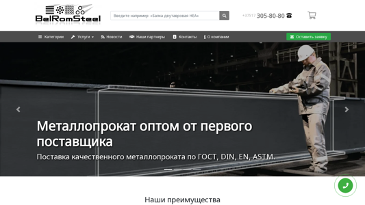 | SEO-описание | ООО "БелРомСтил" - Металлопрокат оптом из Европы в Минск. Поставляем продукцию из Европы в страны СНГ. На данном сайте мы официально поставляем продукцию оптом по всей РБ. |