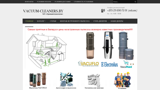 | AI-анализ | --- The website is dedicated to the sales, installation, and servicing of built-in vacuum cleaners in Belarus, specifically in Minsk. Brands include Vacuflo, Vacumaid, Aerovac, and Electrolux from the USA. The homepage offers a catalog of accessories and components for purchase. Top products include various hoses, separators, brushes, and power units. The website also features articles on mounting built-in vacuum cleaners and a list of dealers. The domain is vacuum-cleaners.by. |