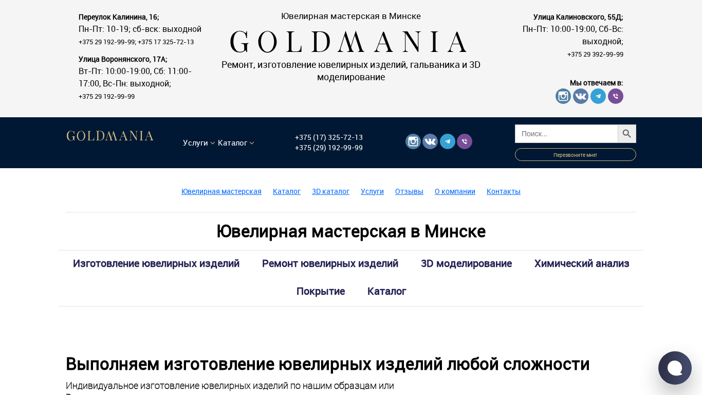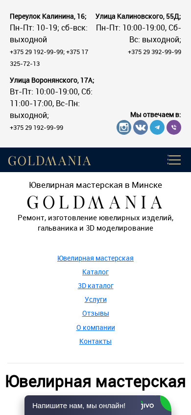 | Название / Заголовок | Ювелирная мастерская в Минске, цены ювелирной мастерской Goldmania |