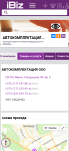 | AI-анализ | This online resource belongs to the company "Avtokompletsiya OOO" located in the city of Minsk, Belarus. The company specializes in the sale of auto trailer electrical equipment and instruments. The website provides a map for reaching the company's office at the address: 220125, Gorodeckaya Street 40, office 5. The contact numbers for the company are: +375 (17) 347 88 xx, +375 (17) 325 69 xx, and +375 (29) 654 75 xx. The company's Unified State Register number is 100229435. The website offers information about the company, its products and services, as well as contact details and operating hours, which are |