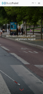 | AI-анализ | The web project BuzzPoint.org is a service designed for visually impaired and blind people, providing audio navigation information for buildings and facilities. It requires a smartphone with Android or iOS operating system and Bluetooth Low Energy (BLE) module to function. The service allows users to identify building entrances and exits, locate offices within institutions, and obtain information on the operating hours or other details of social objects. The cost of installing audio information beacons is borne by the property owners. The project was developed in collaboration with visually impaired individuals. For property owners, retailers, or service providers interested in creating an inclusive environment for people with limited abilities, the service offers a free downloadable brochure and both the service and the application are available for free on Google Play and App Store. The map on the website shows the locations of audio-speech information beacons. The map is presented using Le |