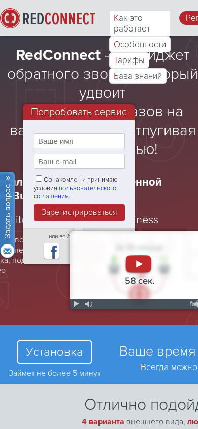 | AI-анализ | The portal RedConnect is a website service providing a callback feature, allowing clients to connect with operators through a module with a built-in shared browser. This tool facilitates communication with clients and enhances the conversion rate of your site by 40%. RedConnect is a widget offering three versions: free, lite, and business. The free version includes email notifications for call requests, while the lite version calls and notifies the site owner, replacing the caller ID. The business version allows installation within five minutes and offers four customizable designs. RedConnect's unique co-browse technology enables operators to observe clients' actions on the site and conduct online presentations. Additionally, the RedHelper system allows operators to view all dynamic changes on the client's page, including opened forms, active content, and animations. Try another of our services - the RedHelper chat for your site - which offers a simple, convenient, |