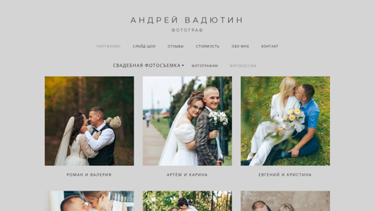 | SEO-описание | Свадебная фотосъемка, фотосессии. Сайт фотографа Андрей Вадютин. Я работаю как фотограф Love Story, свадебный фотограф в городах Гомель |