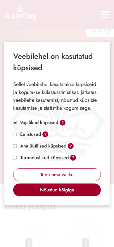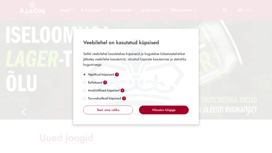 | AI-анализ | The portal Avaleht | A. Le Coq is the website of A. Le Coq, the oldest and largest beverage producer in Estonia. The website offers 11 different product categories, with the largest being the alcoholic beverages category, followed by dairy products, water and carbonated beverages, and other groups such as snacks, alcohol-free beverages, sports and energy drinks, and condiments. The website uses cookies to provide and collect usage statistics, enhancing the user experience by enabling functions such as navigation and access to protected areas. The website does not function without these cookies. [No assumptions or speculations, just a factual description based on the provided data.] The website contains links to various product categories, including alcoholic beverages, dairy products, water and carbonated beverages, snacks, alcohol-free beverages, sports and energy drinks, and |