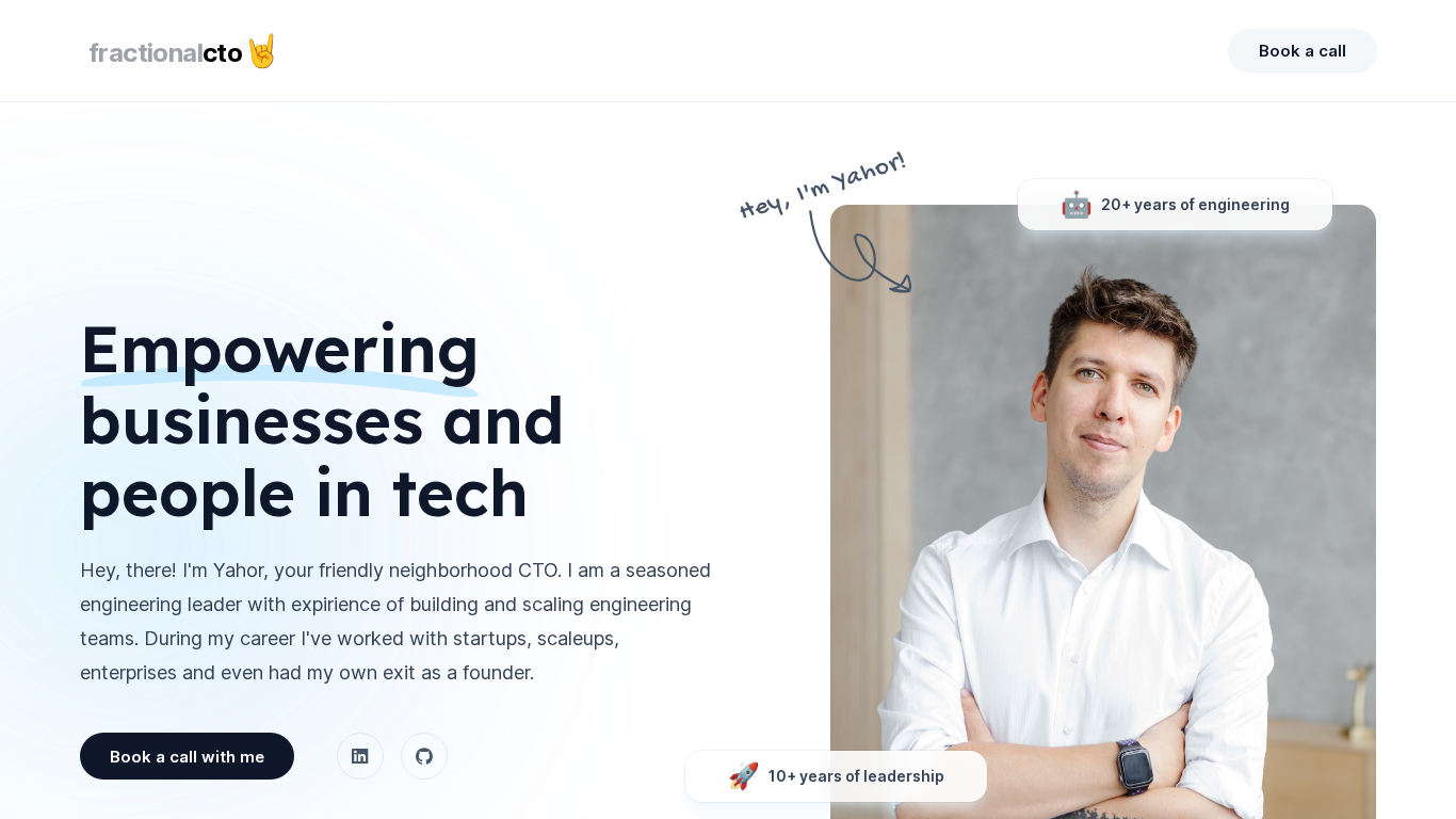 | Название / Заголовок | Yahor Kuryanovich - your friendly nieghborhood fractional CTO |