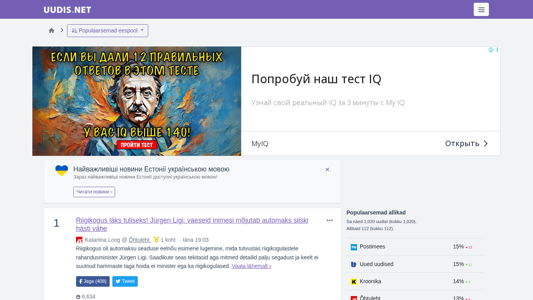 | Название / Заголовок | 🔥 Tähtsamad Eesti uudised - Uudis.net |