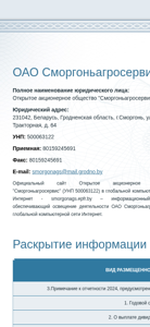 | Название / Заголовок | Сморгоньагросервис ОАО |