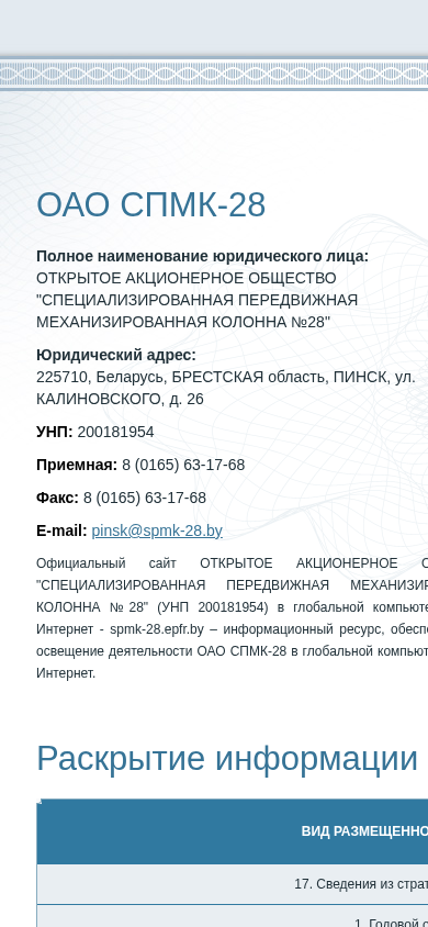 | pinsk@spmk-28.by, spmk28i@mail.ru | |