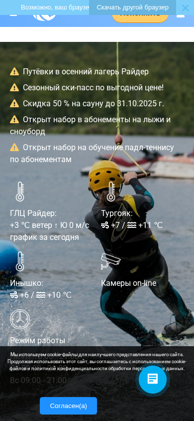 | AI-анализ | The website rider74.ru is the official site for Rider, a year-round ski resort located in Miass, a city in the Chelyabinsk region. The website provides information about the resort, its club system, sports school, rental services, and various events and news. Keywords associated with the site include words related to the ski resort, such as "winter sports," "training," "rental," and "accommodation." The site also features sections for news, documents, and a review system. Visitors can find information about the ski school, instructors, rental prices, and various sports facilities like sauna, solarium, and cafeteria. The site includes sections for booking accommodations, renting equipment, and signing up for ski courses. Additionally, it offers information about various events, such as competitions and children's parties. The website also has a section for rent |