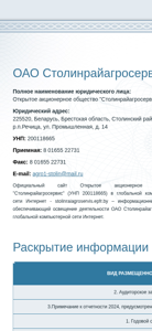 | Название / Заголовок | Столинрайагросервис ОАО |