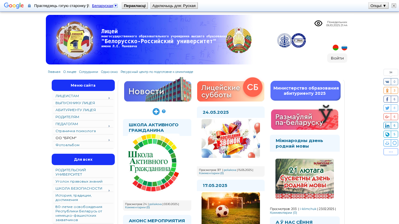 | Название / Заголовок | Лицей БРУ имени Л.Е. Маневича - Главная страница |
