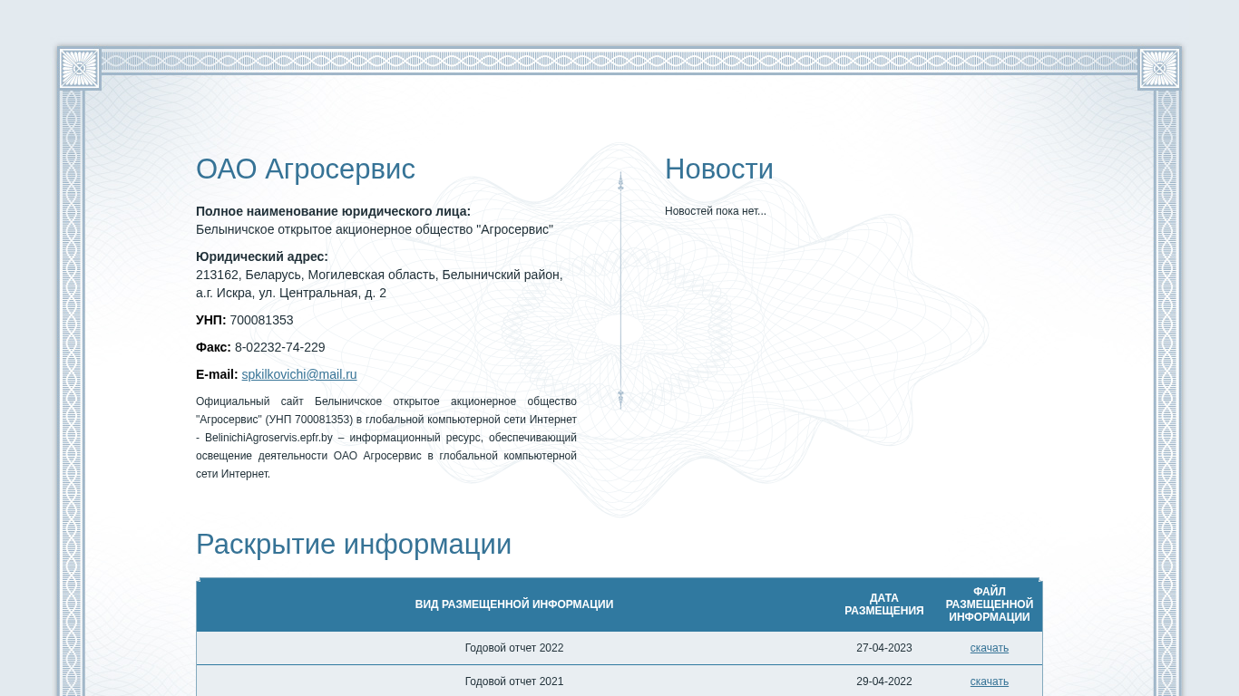 | SEO-лексика | агросервис оао годовой отчет скачать пароль e-mail информации белыничское открытое акционерное общество адрес унп 700081353 глобальной компьютерной сети интернет epfr |