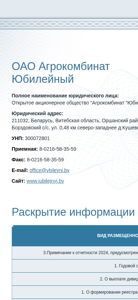 Название / ЗаголовокАгрокомбинат Юбилейный ОАО