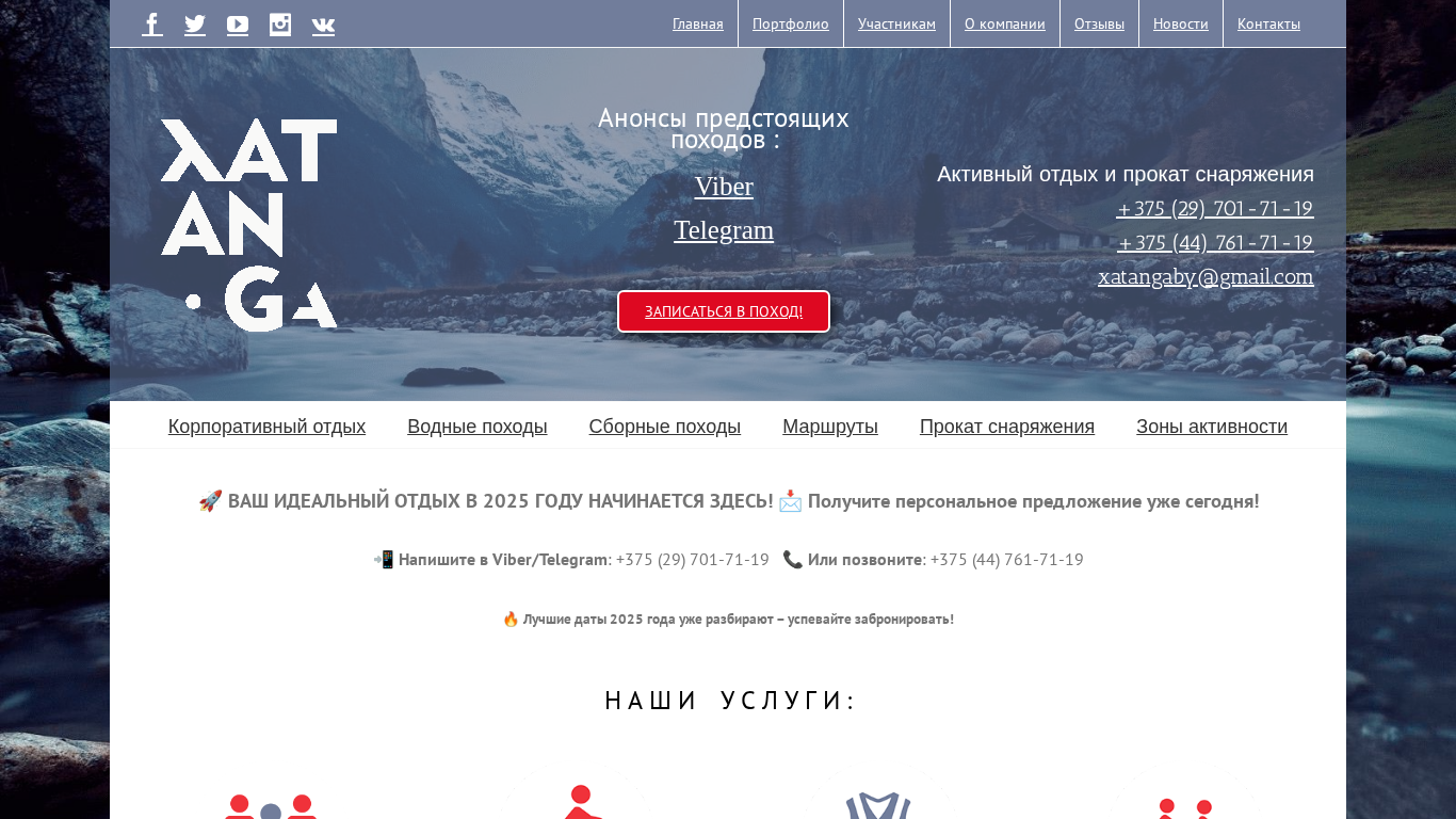| SEO-описание | ► Мы знаем, где лучшие места для активного отдыха. 👍 Сплавляемся по рекам 👍 Осваиваем зимние походы 👍 Проходим захватывающие квесты 👍 Проводим корпоративные тренинги — и все это прямо сейчас в Минске! ► Устали от городской суеты? ☎ Звоните! +375 (44) 761-71-19 |