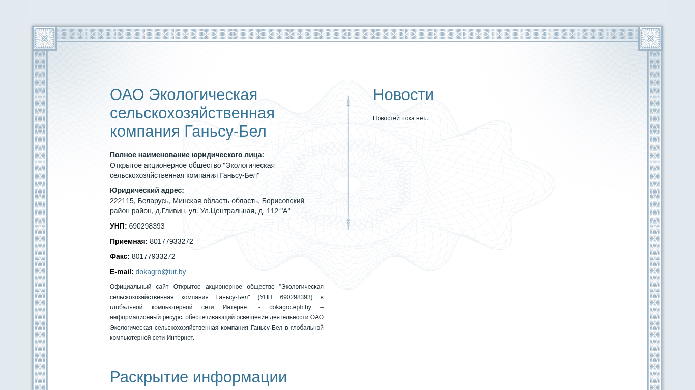 | Название / Заголовок | Экологическая сельскохозяйственная компания Ганьсу-Бел ОАО |