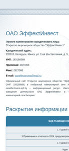 | Название / Заголовок | ЭффектИнвест ОАО |
