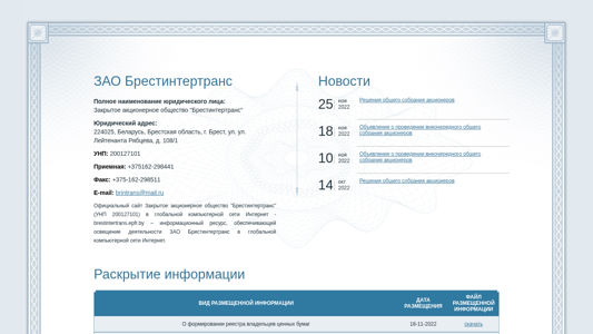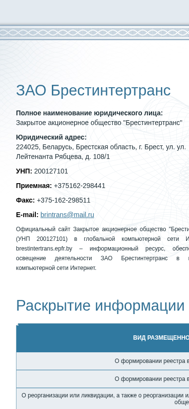 | Название / Заголовок | Брестинтертранс ЗАО |