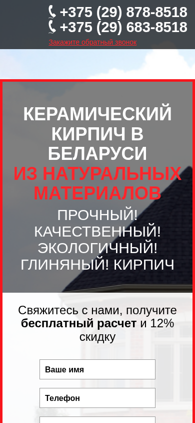 | AI-анализ | The website is for a ceramic brick manufacturer in Belarus, named "Керамический кирпич" (Ceramic Brick). The title and description keywords indicate that the site is about ceramic bricks. The top words suggest that the site offers various brick types, including oblizochniy (decorative) and term (insulating) bricks, as well as contact information and a call-to-action for requesting a quote and receiving a discount. The site also seems to offer a variety of brick colors, including red, light, and dark, with some bricks featuring a full body color. The site appears to offer both porous and non-porous brick options, as well as insulating blocks for constructing walls and partitions. The site may also provide information on the brick's technical specifications, such as its porosity and compressive strength. The domain is "ке |