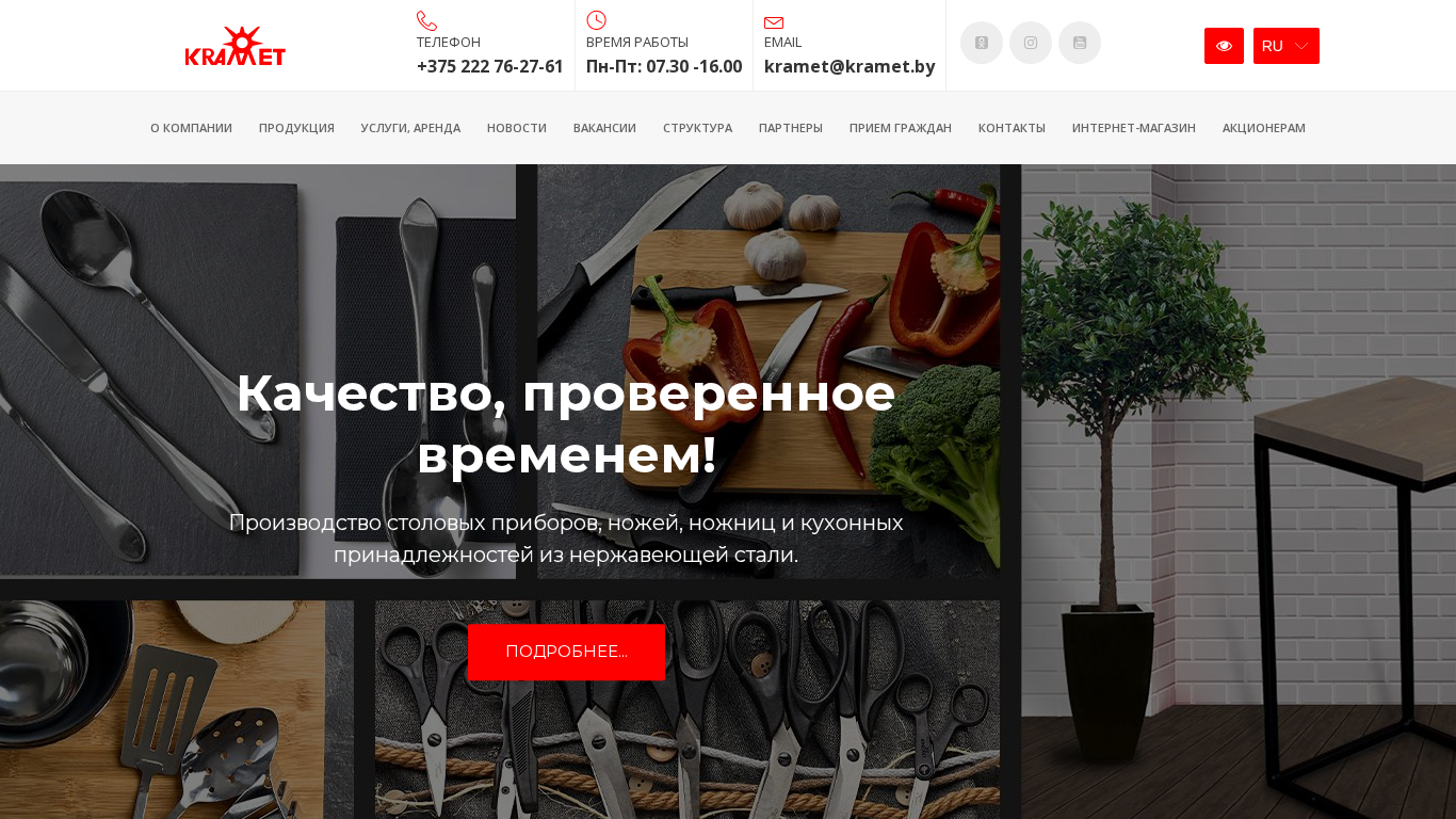 | AI-анализ | The portal "Красный меtalлист" is a Belarusian manufacturer of tableware, cutlery, kitchen utensils, kitchen knives, and furniture for lofts. Phone: +375 222 76-27-61. Working hours: Mon-Fri: 07.30 -16.00. Email: kramet@kramet.by. Products include tableware, kitchen knives, cutlery, kitchen utensils, and loft furniture, all made of high-quality stainless steel. The company "Красный Металлист" has been successful for over 90 years and offers original and innovative designs. |