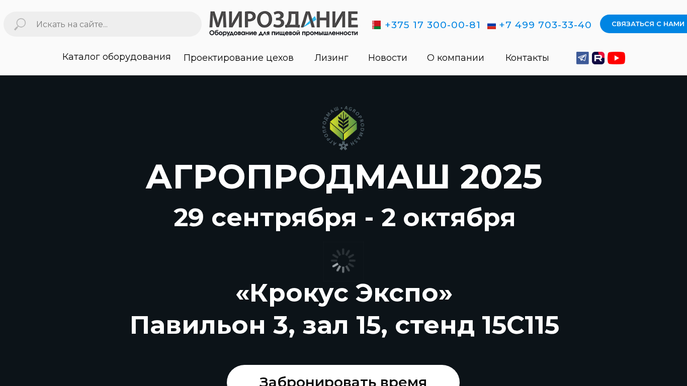 | Название / Заголовок | Мироздание — поставщик оборудования для пищевых производств |