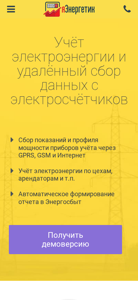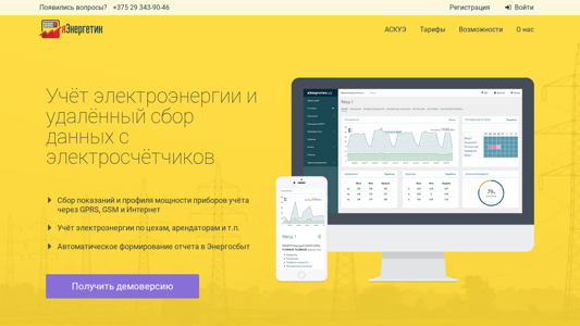 | AI-анализ | --- The web project "яЭнергетик" offers an energy consumption monitoring system for remote data collection via GPRS, GSM, and the Internet. The main page provides access to the ASKUE system, tariffs, possibilities, power quality analysis, supported counters, and customer support. Users can register, log in, and access services such as "Askue Tariffs," "Askue Possibilities," and "About Us." The website enables users to monitor and analyze their electricity usage and power quality in graphical and tabular formats, with real-time data collection from various electric meters including those from Energy Meter, Gran-electro, Alpha, Mercury, SET, PSC, and others. The system supports one-time and scheduled data collection, and includes features like a thermal map for visualizing consumption patterns, power profile analysis, and parameter monitoring for network quality assessment. Users can also download reports |