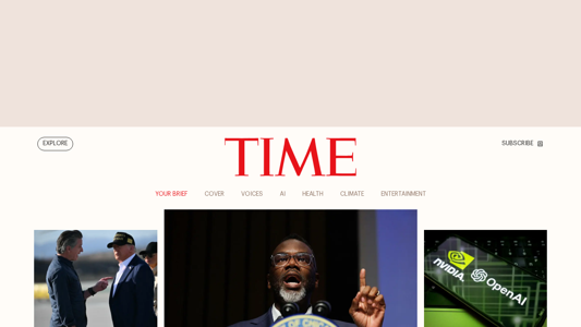 | AI-анализ | This website is titled "TIME | Current & Breaking News | National & World Updates" and is operated by TIME. It provides current and breaking news, analysis, and updates on various topics including politics, world news, health, science, entertainment, and technology. The website uses images extensively and is keyword rich with terms like 'the', 'images', 'climate', 'getty', 'health', 'time', 'entertainment', and 'tech'. The homepage features multiple articles with brief summaries and a play button for a daily news brief. The website also includes sections for newsletters, covers, voices, and access to past issues. |
