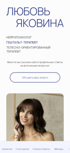 | AI-анализ | The portal "Любовь Яковина" is a website run by a practicing psychologist and neuropsychologist, offering both online and offline therapy sessions in Minsk, Belarus. The website focuses on various topics including relationships with a partner, self-finding, depression, anxiety, and stress, among others. The keywords suggest that the therapist specializes in helping clients with issues related to self-acceptance and self-awareness, as well as providing sexology services. The website offers individual therapy sessions and group therapy sessions, with different durations and frequencies available. The cost of consultation is not explicitly stated in the given data. |