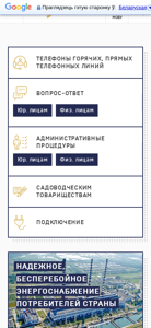| AI-анализ | This online resource is dedicated to the state production union of energy, Belenergo. It provides information for investors about renewable energy and investment activities. The website offers unused real estate information, details on the reserve capacity of power stations in Belarus, and the creation of mining farms. For physical persons, there are administrative procedures and electronic services related to tariffs on energy, information on sales, and safety guidelines. There are also vacancies for legal entities and the same administrative procedures. The website provides information on connecting to the power grid, tariffs, and safety guidelines for cooperatives and information on sales and the Day of Night event. The website also includes a search function for Belenergo, contact information, and a qualification of personnel, reliable and uninterrupted power supply to the country, and the efficient functioning of the energy system with innovative development. |