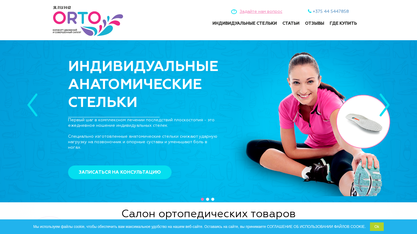 | AI-анализ | --- The portal Yalina-ORTO sells individual orthopedic insoles in Minsk and Belarus. Customers can order individual insoles through the website or by calling +375 (44) 544 78 58. The website offers various types of insoles, including insoles for children, pregnant women, prevention and correction, women on heels and sports. The website also provides articles on foot health and information about cookie usage. The top selling products include orthopedic insoles, a top-8 health product list for autumn-winter, and an orthopedic insole for children. The website features a blog, information about participation in various events, and a section for gifts. The contact information includes several phone numbers and an email address. The website is available Monday through Friday. |