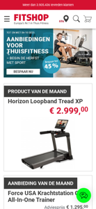 | AI-анализ | This website is an online shop for home fitness equipment, operated by Fitshop, the number one home fitness retailer in Europe with 69 physical stores. Customers can purchase a wide range of fitness apparatus, including treadmills, weightlifting stations, and exercise bikes, among others. The website offers free shipping for orders above €99, and provides information on 41 years of thuisfitnessexpertise. There are 69 filialen with 75 own service technicians. The website is available in English, French, and Dutch, and offers a My account section for customers to manage their orders and account information. The website features categories for condition training, strength training, and other fitness equipment, as well as massage, yoga, and wellness products. The company's contact information and a contact form are also provided, along with a filialenoverzicht and |