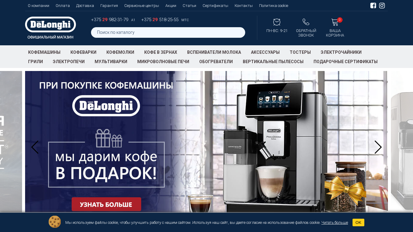 | SEO-описание | Официальный сайт фирменного магазина DeLonghi. Бытовая техника от официального поставщика с доставкой по Беларуси. Гарантии. Рассрочка |