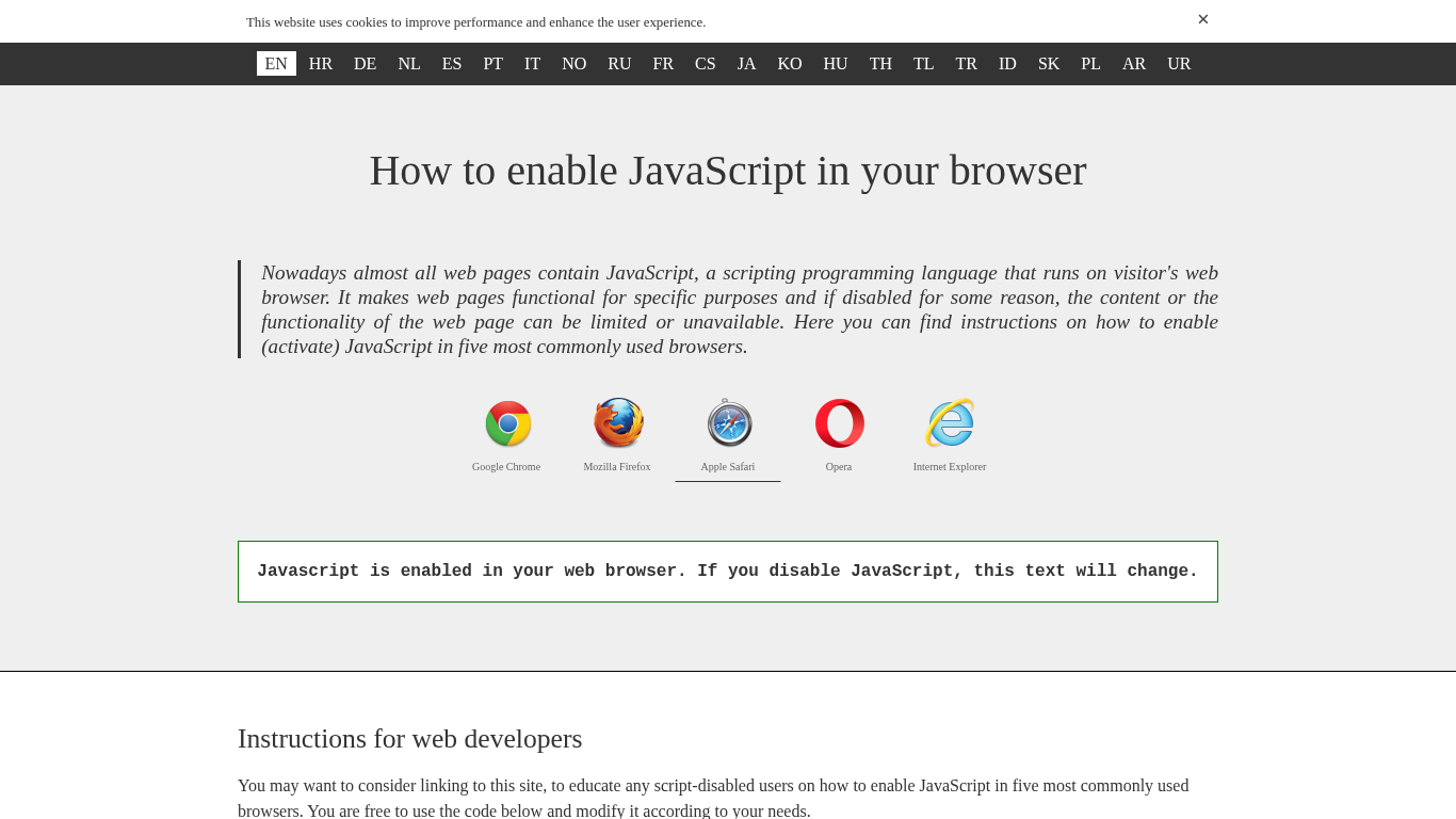 | SEO-описание | Instructions on how to enable (activate) JavaScript in web browser and why. |