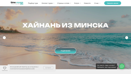 | AI-анализ | This online resource is for Time Voyage Plus, an online travel agency from Minsk, Belarus. Users can explore the world with this platform, which offers the best tours and travel deals with hot offers and exclusive discounts. The full range of services from the travel agency is available online. The website provides a catalog of tours by countries and hotels, as well as various services, news, and the option to request a callback. The website also offers early booking for Turkey in 2025, as well as tours to Fuquok from Minska, and more. The top countries featured on the website include Turkey, Indonesia, Tanzania, Egypt, Qatar, Kenya, Thailand, Cuba, Azerbaijan, Oman, Vietnam, Maldives, Georgia, Armenia, Seychelles, Spain, India, and Sri Lanka. The website also offers visas and various methods |