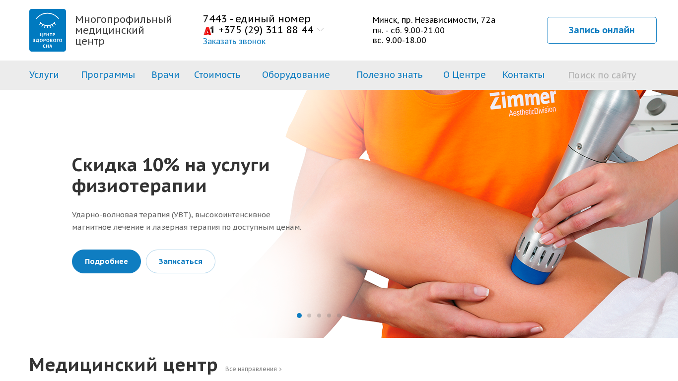 | SEO-описание | В многопрофильном частном медицинском центре «Центр здорового сна» в Минске работают высококвалифицированные специалисты. ✔Индивидуальный подход в платном медцентре |