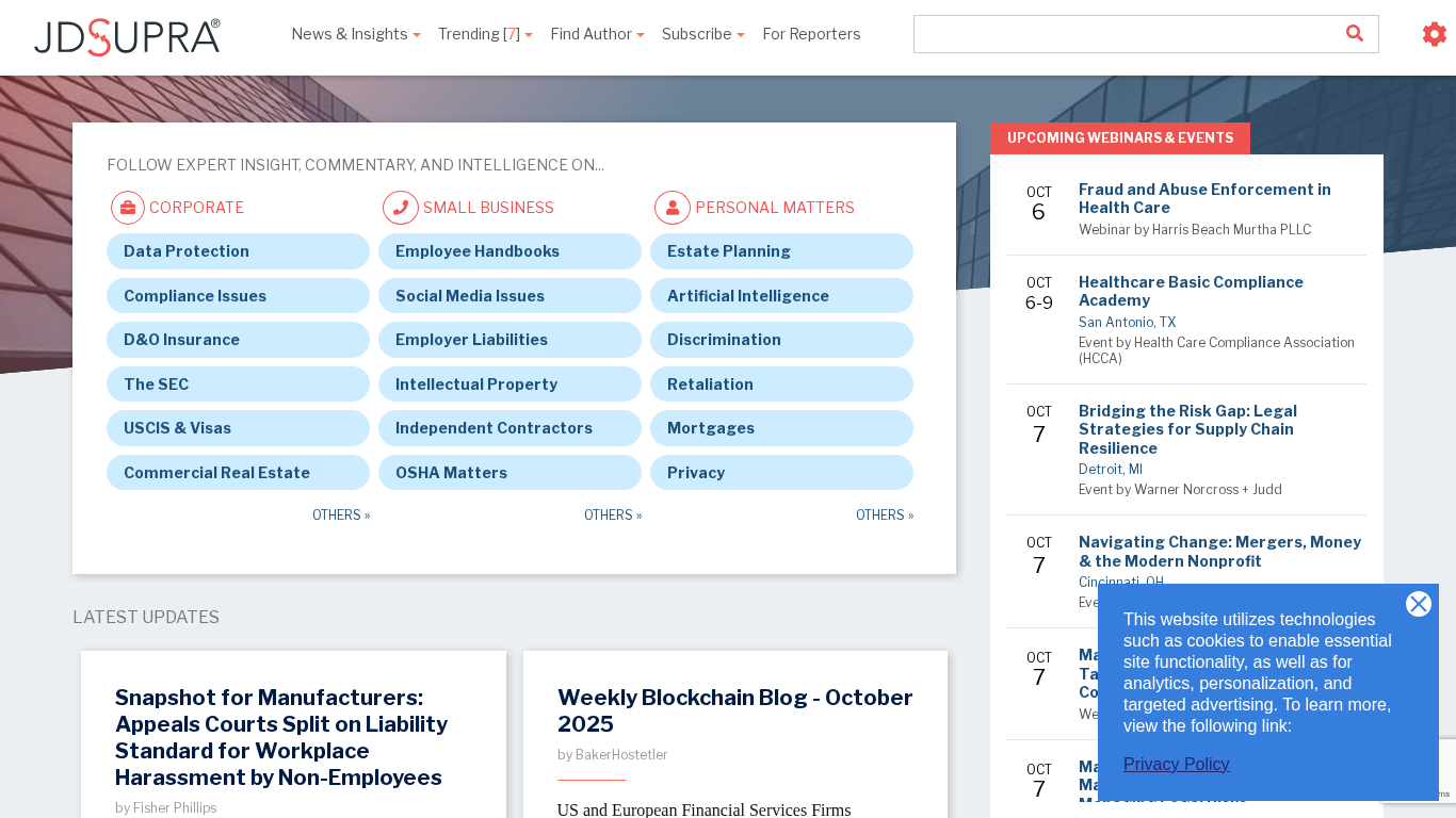 | Название / Заголовок | Need-to-Know News, Insights, & Intelligence for Business Leaders | JD Supra |