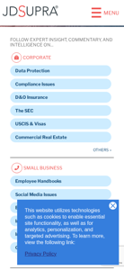 | SEO-описание | JD Supra is a daily source of legal intelligence on all topics business and personal, distributing news, commentary & analysis from leading lawyers & law firms... |