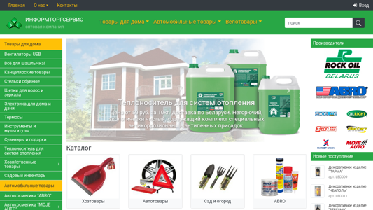 | SEO-описание | Оптовые поставки по Республике Беларусь хозяйственных и автомобильных товаров, автохимии, теплоносителя для отопления, товаров уборки помещений, товаров для сада и огорода. |