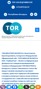| Название / Заголовок | TOR Беларусь ООО ТорМашТорг ОФИЦИАЛЬНЫЙ ДИЛЕР Строительное, Грузоподъемное, Складское оборудование. Сайт |