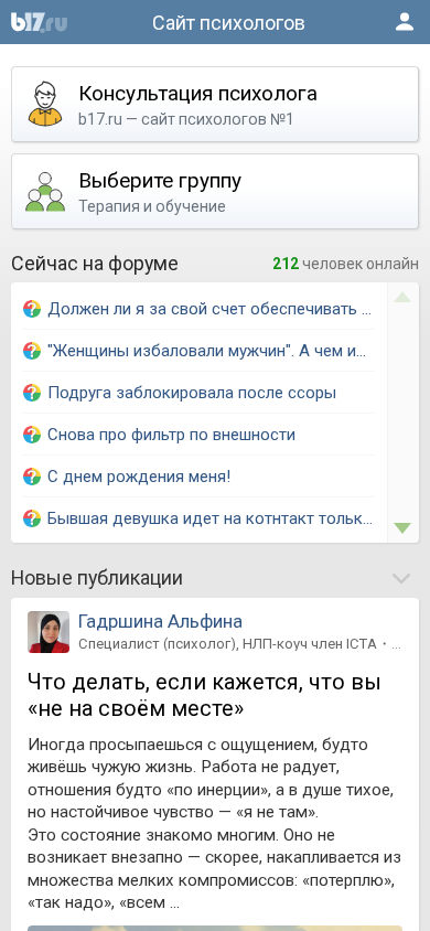 | SEO-описание | Психологические консультации, статьи, тренинги и общение на форуме сайта. |