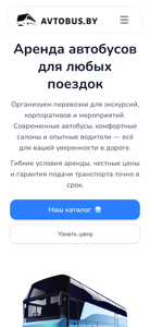 | AI-анализ | The web project "Avtobus.by" is an online platform that offers bus rental services in Minsk, Belarus. The website focuses on renting Mercedes and Setra buses with experienced drivers for various types of trips, including excursions, corporate events, and tours. The buses come with modern amenities like a toilet, air conditioning, and reclining seats for a comfortable ride. Users can contact the company by calling +375 29 628 90 29 for more information. The platform also offers a discount of 5% for rentals of 3 hours or more. The website provides details on the types of services offered, such as transportation for school trips, events, and business meetings, as well as information about the company and its contact information. Users can also leave a request for a quote. The website offers a range of bus models, including the Set |