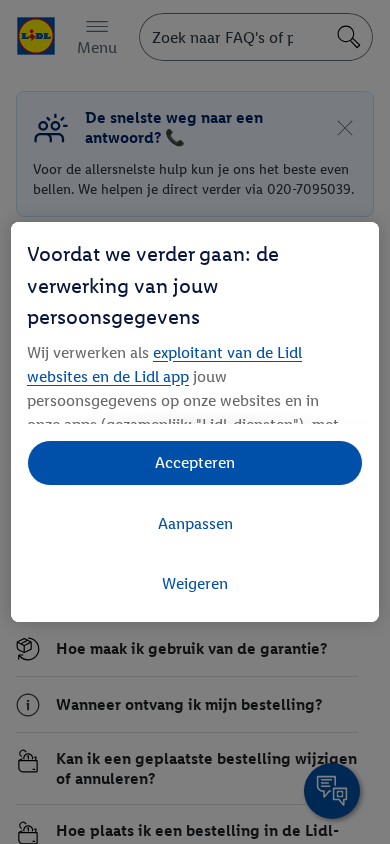 | AI-анализ | This online resource is the Customer Care Serviceportaal of Lidl Nederland, providing answers to customers' questions, instructions for using certain services, and contact information for the customer service department. The most common topics for this website include Lidl, van (the), een (a), het (the), met (with), voor (for), onze (our), jouw (your), hoe (how), over (about), niet (not), ons (us), aan (to), als (as), informatie (information), deze (this), kunnen (can), diensten (services), kan (can), technieken (techniques), and return and guarantee inquiries. Visitors can find solutions to frequently asked questions about returning articles, using the guarantee, delivery and pick-up, placing orders, and other topics. The website also offers a chat feature for more immediate assistance and a list of common |