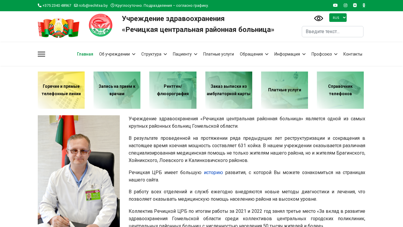 | Адрес | Счет спонсорской помощи:, Учреждение здравоохранения "Речицкая центральная районная больница", Адрес: ул. Трифонова, д.117 |