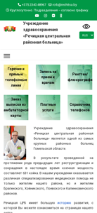 | AI-анализ | --- The website is for the Central District Hospital in Rechitsa, Belarus. The title is 'Главная' (Main) and the description is empty. The top words include '375' (Belarus country code), '2340' (phone number), 'отделение' (department), 'заведующий' (head of department), 'речица' (city name), 'crb' (acronym), 'поликлиника' (outpatient clinic), 'услуги' (services), 'прием' (reception), 'административные' (administrative), 'помощь' (help), and various other words related to healthcare, medicine, and the Russian, Belarusian, and English languages. The domain is 'med.rechitsa.by'. The contact information includes a phone number |